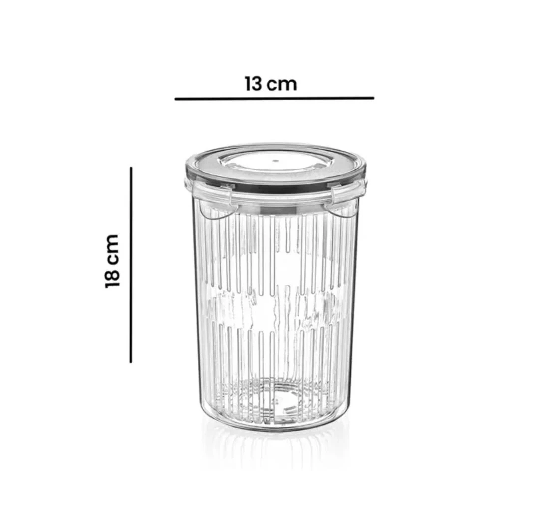 Süfrələrin vazkeçilməzi olan zeytun və turşuları daha rahat servis edin! Bu 1500 ml-lik saxlama qabı, xüsusi süzgəcli mexanizmi sayəsində məhsulları suyundan asanlıqla ayıraraq təqdim etməyinizə şərait yaradır. Qapaqlı dizaynı isə qidaların hər zaman təravətli qalmasını təmin edir.