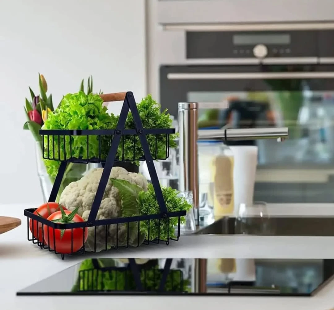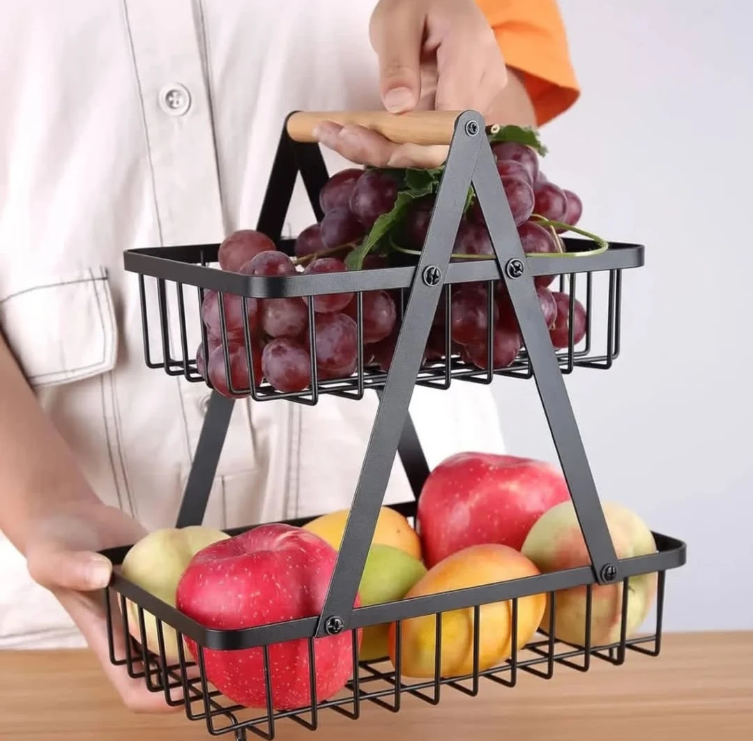 Mətbəx dəzgahınızda həm nizam yaradın, həm də meyvələrinizin təravətini daha uzun müddət qoruyun! Bu 2 mərtəbəli meyvə səbəti, şaquli dizaynı sayəsində az yer tutur, lakin ikiqat daha çox saxlama sahəsi təqdim edir.
