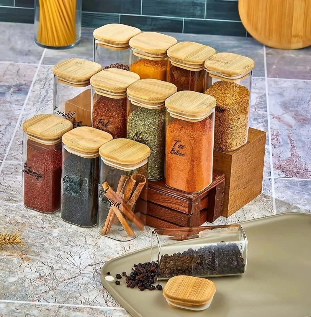 Asan Markalanma: Şüşənin hamar səthinə müxtəlif etiketlər yapışdıraraq ədviyyat kolleksiyanızı daha peşəkar şəkildə nizam küncünə çevirə bilərsiniz.