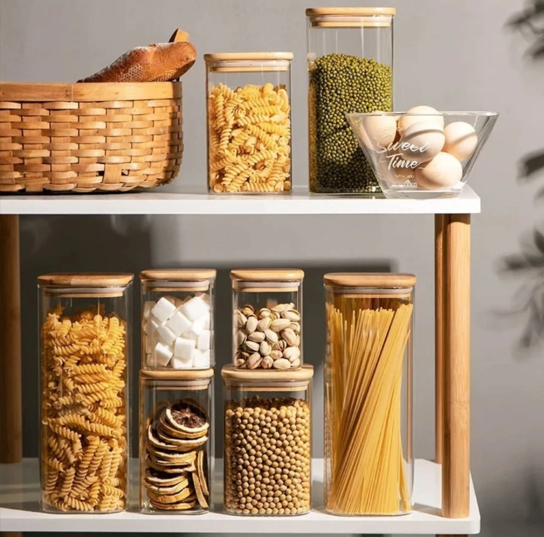 Mətbəx şkaflarınızda maksimum nizam yaradın! Bu 800ml geniş həcmli şüşə banka, makaronlardan tutmuş dənli bitkilərə qədər bütün quru qidalarınızı ən sağlam və estetik şəkildə saxlamaq üçün dizayn edilib. Şəffaf quruluşu və təbii bambuk qapağı ilə mətbəxinizə müasir bir toxunuş qatacaq.
