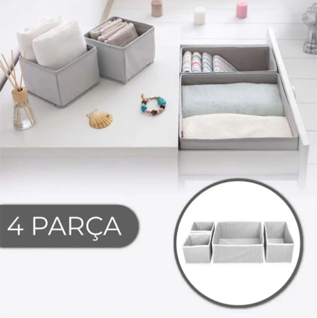 4-lü Funksional Dəst: Paketə 3 fərqli ölçüdə cəmi 4 ədəd qutu daxildir, bu da saxlama sahəsini ehtiyacınıza uyğun bölməyə imkan verir.
