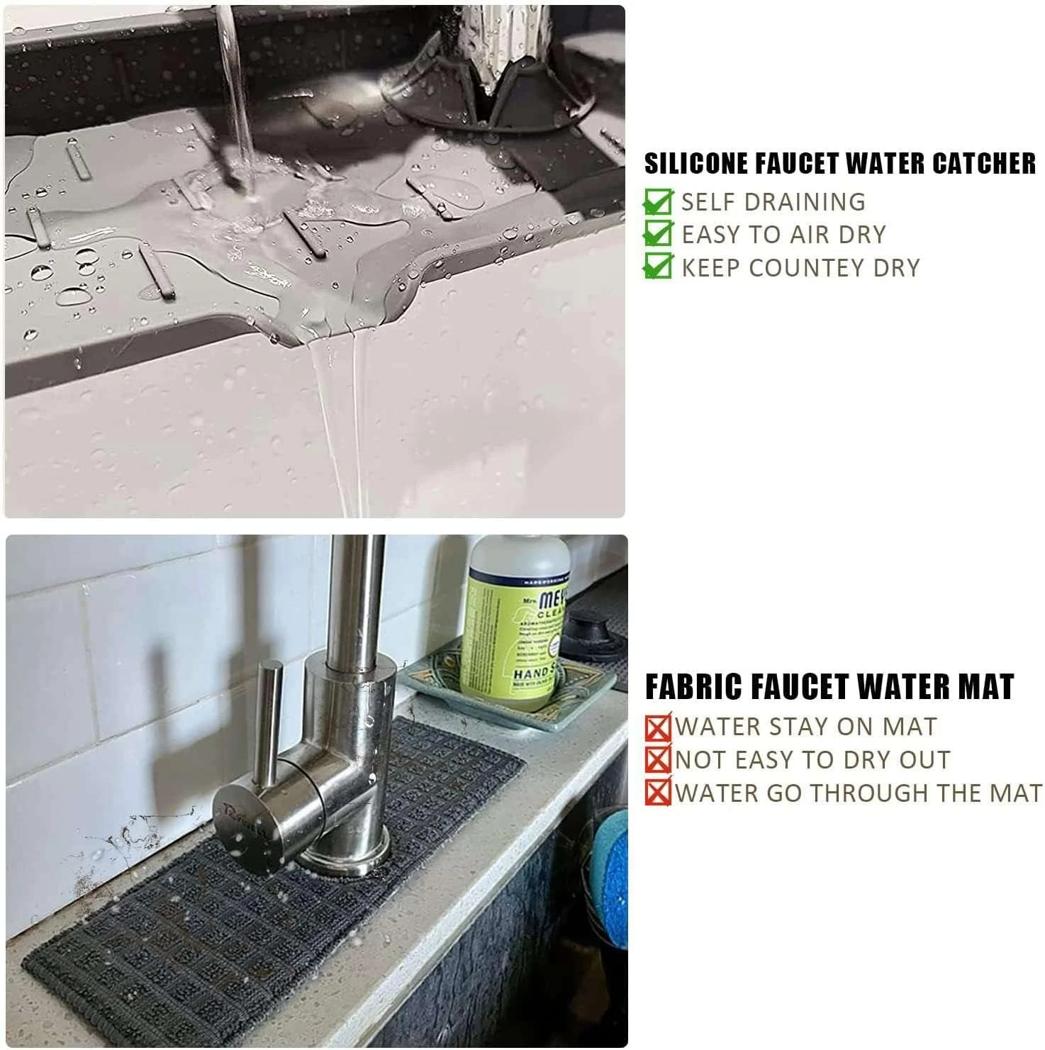 Kran ətrafında yığılan su gölməçələrinə və ərp ləkələrinə son qoyun! Arispa silikon musluk matı, kranın dibindən sızan və ya əllərinizi yuyarkən sıçrayan suları birbaşa çanağa yönləndirərək ərazinin quru qalmasını təmin edir.