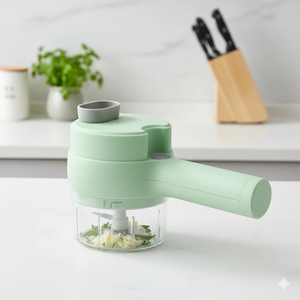Mətbəxdə vaxtınıza qənaət edin və doğrama işlərini saniyələr içində tamamlayın! Bu elektron tərəvəz doğrayıcı, kompakt dizaynı və güclü motoru ilə sarımsaq, soğan, tərəvəz və göyərtiləri bir toxunuşla mükəmməl şəkildə doğrayır.