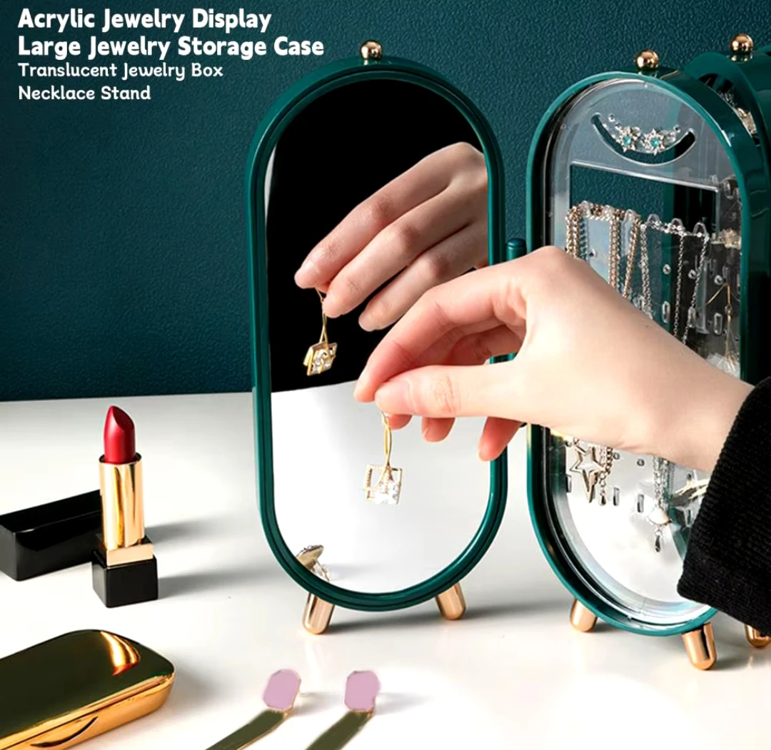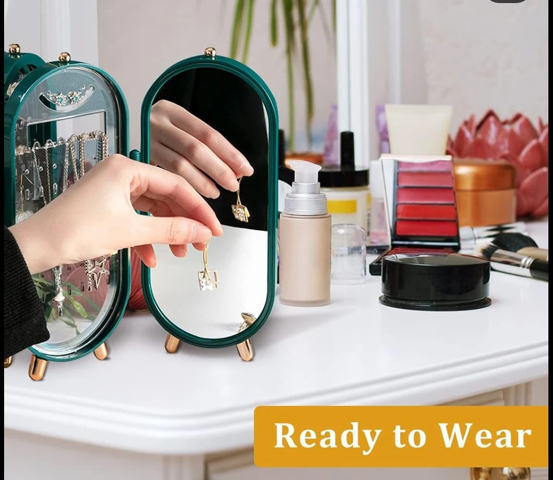 Zinət əşyalarınızı həm qoruyun, həm də estetik bir şəkildə nümayiş etdirin! Bu qatlanan zinət əşyaları standı, xüsusi ekran dizaynı və daxili güzgüsü ilə makiyaj masanıza lüks bir toxunuş qatacaq.
