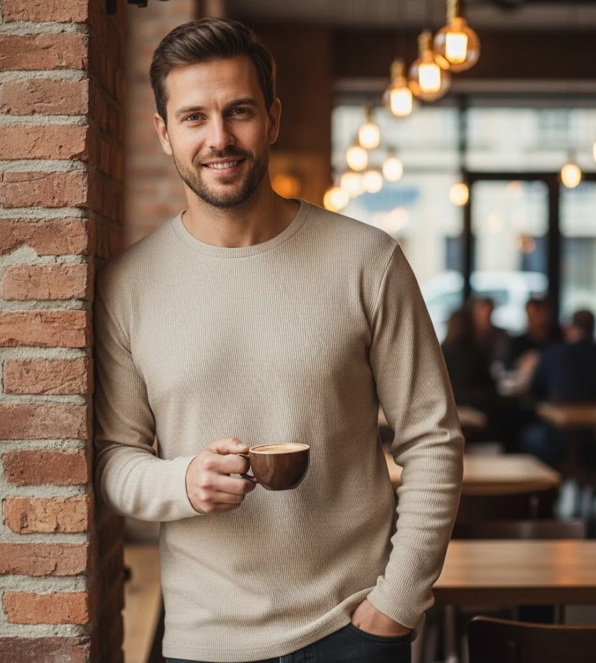 MEDICINE brendindən olan bu bej rəngli, uzunqol T-shirt rahatlığı və sadəliyi ilə gündəlik geyiminiz üçün ideal seçimdir. Ribana toxunma quruluşu ona müasir və stil sahibi bir görünüş verir, eyni zamanda yumşaq materialı gün boyu rahatlıq təmin edir. Həm tək, həm də digər geyimlərin (məsələn, pencək və ya gödəkçə) altında rahatlıqla istifadə edilə bilər. Hər iki cins üçün uyğundur.