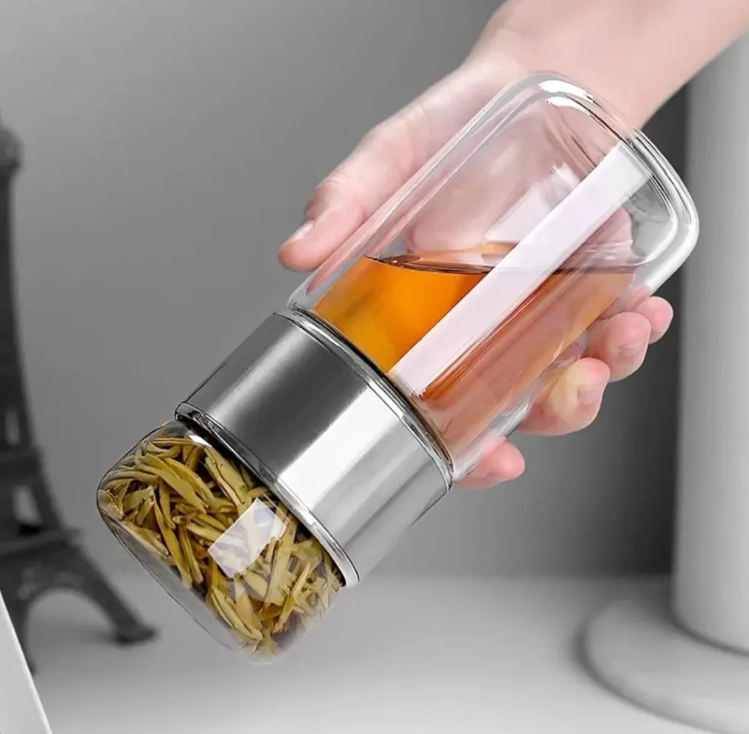 İstər ofisdə, istərsə də yolda çay və detoks keyfinizi sağlamlıqla birləşdirin! Bu Borosilikat Şüşə Termos, xüsusi filter sistemi sayəsində bitki çaylarını və meyvəli içkiləri anında hazırlamaq üçün mükəmməl seçimdir.