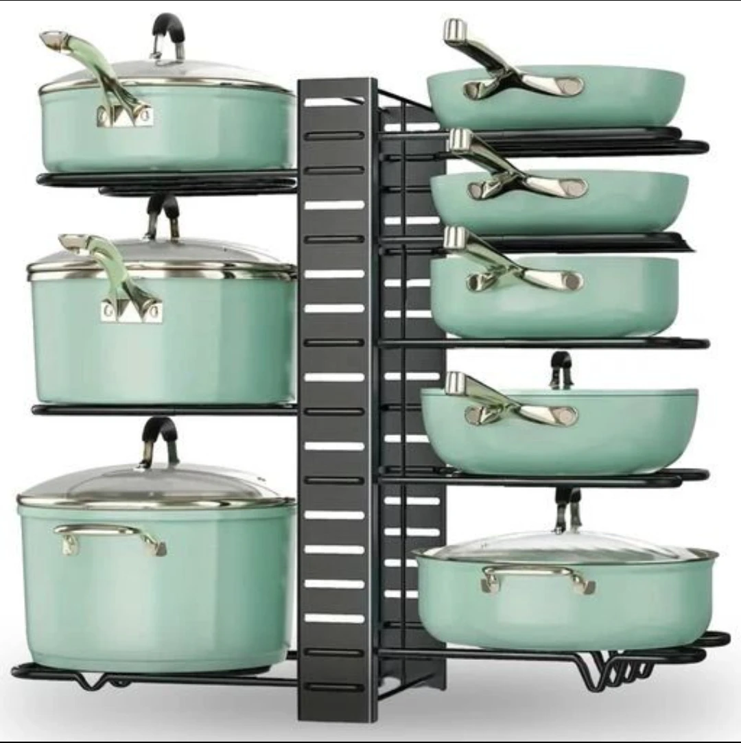 Mətbəx dolablarınızda və dəzgahınızda maksimum nizam yaratmaq üçün dizayn edilmiş bu 8 bölməli professional stand, ağır mətbəx ləvazimatlarınızı təhlükəsiz və səliqəli şəkildə saxlamaq üçün ideal həlldir.