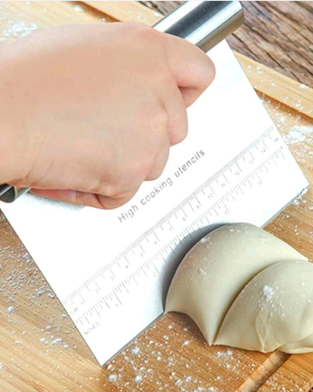 Mətbəxdə xəmir işləri ilə məşğul olmağı sevənlər üçün əvəzedilməz köməkçi! Bu çoxməqsədli xəmir kəsmə aləti, həm xəmiri dəqiq ölçülərlə bölməyə, həm də işçi səthini saniyələr içində təmizləməyə imkan verir.